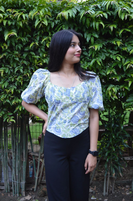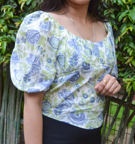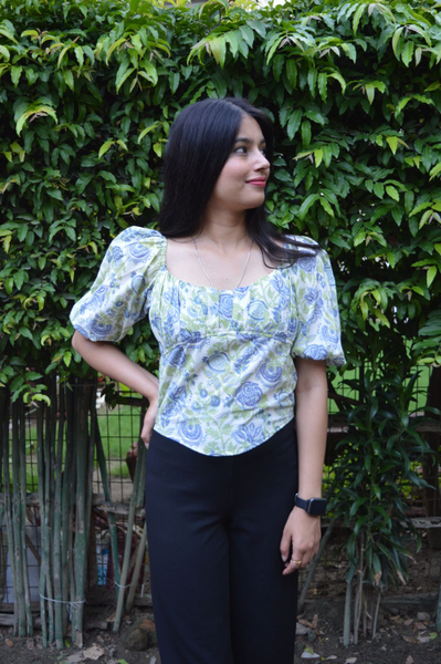 Trendy breathable Cotton corset top with plain weave and smocking effect on the back . Best fabric for summers.