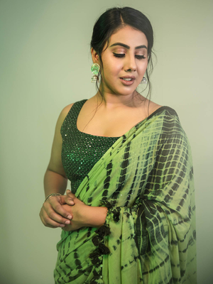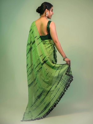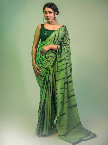 Saree comes with same blouse piece which is model wearing