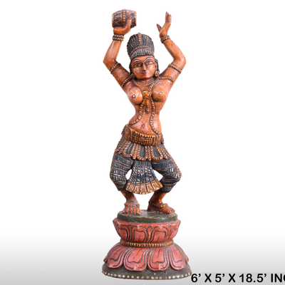 Wooden carved lady figurine , Indian wood statue feminine, decorative/gift item , 6' x 5' x 18.5' inch sculpte...