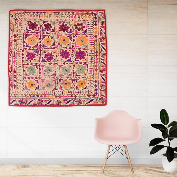 2.10×3.2ft, Floral Motifs Gujrati Textile, Traditional Living Room Textile, Indian Wall Art Hangings, Living R...