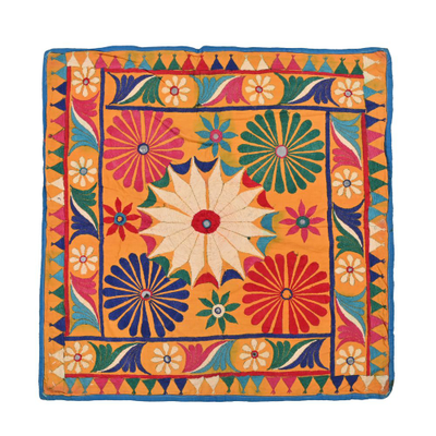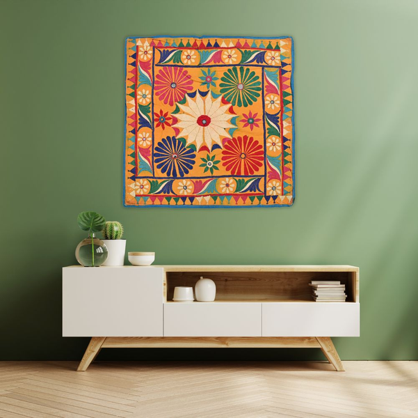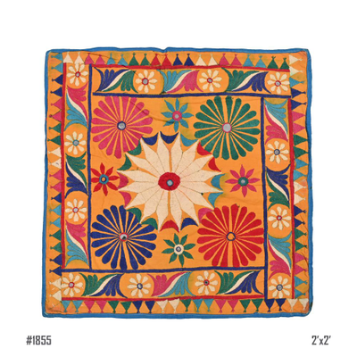 2×2ft Gujrati Textile , Multi Embroidery , Floral Theme, Wall Art, Thread Work, traditional, home decor, mirro...
