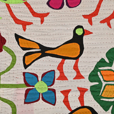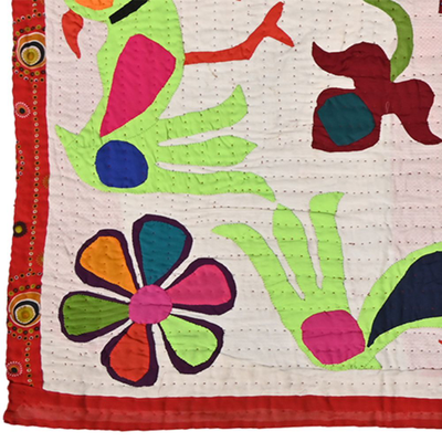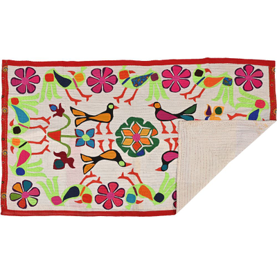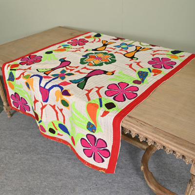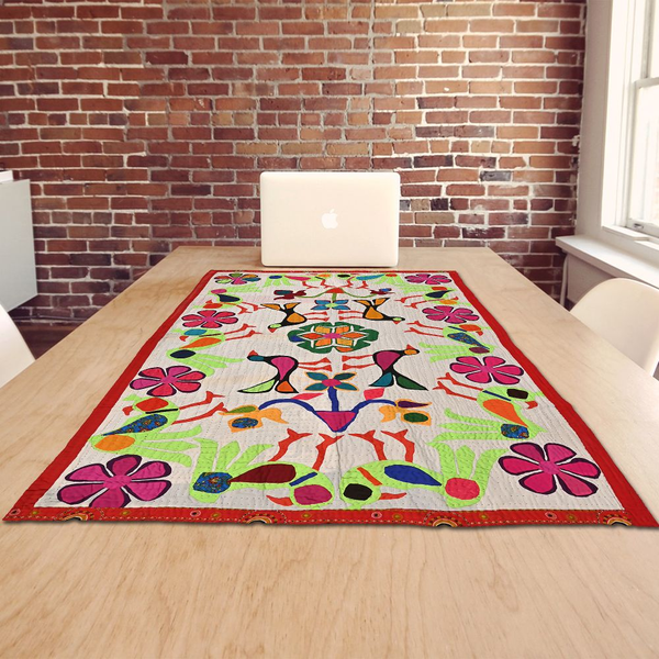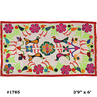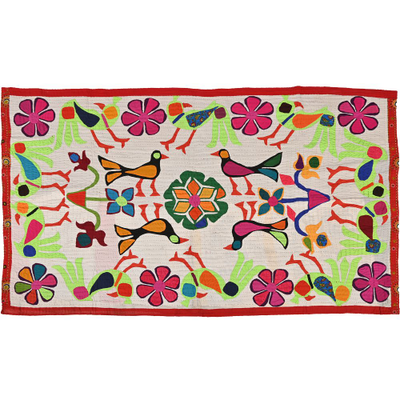 3.9*6 Feet Hand Embroidered Wall Hanging Gujrati Textile, Living Room Cotton Tapestry, Indian Home Decor Uniqu...