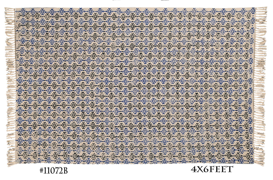 4×6 Ft Printed Cotton Rugs, Hand Block Print, Handmade Organically Dye #11072B