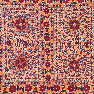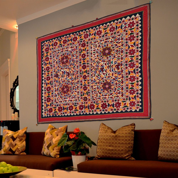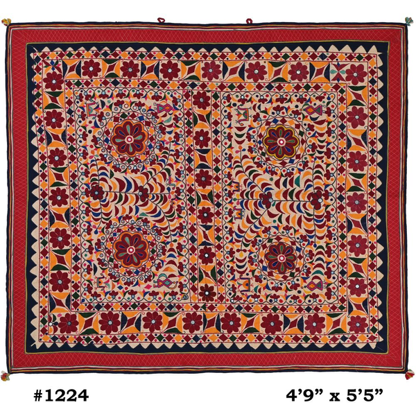 4.9*5.5 Feet Indian Hand Embroidered Wall Hanging Gujrati Textile, Boho Banjara Textile, Rare Collection Of Ta...