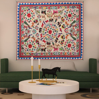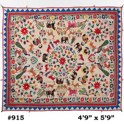 4.9*5.9 Feet Hand Embroidered Wall Hanging Gujrati Textile, Vintage Cotton Tapestry, Home Furniture #915