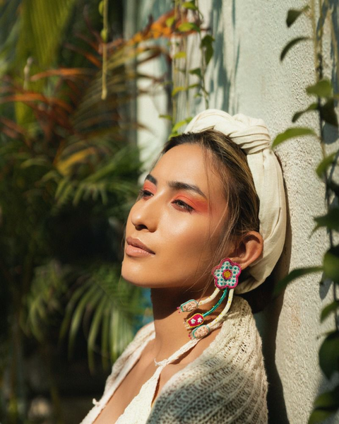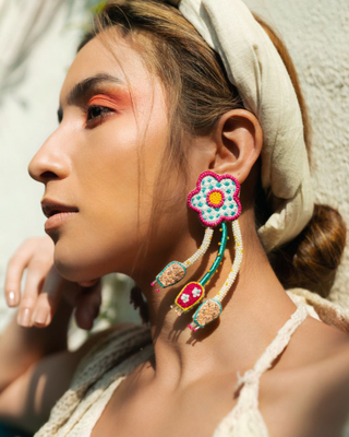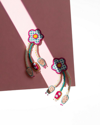 This summer we bring to you some intricately and uniquely handcrafted earrings which can make heads turn. The earrings have beautiful checks flower stud with beads detailing in embroidery and hanging which gives it a quirky look. Earrings are light weight and easy to carry. Provided with a stud at back.