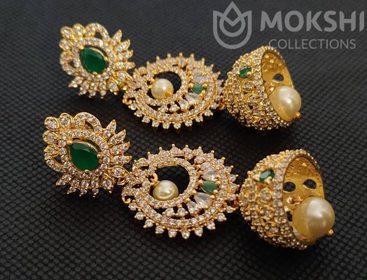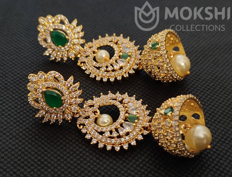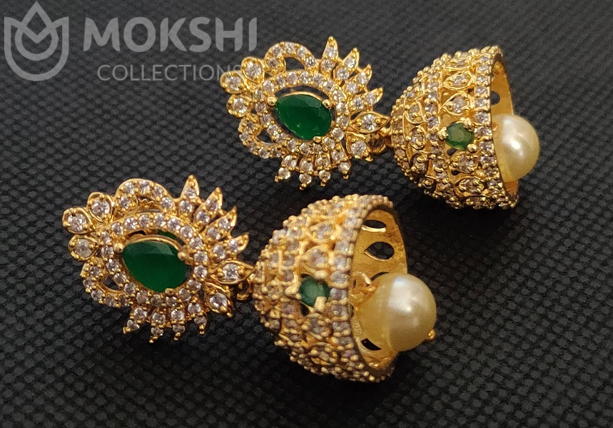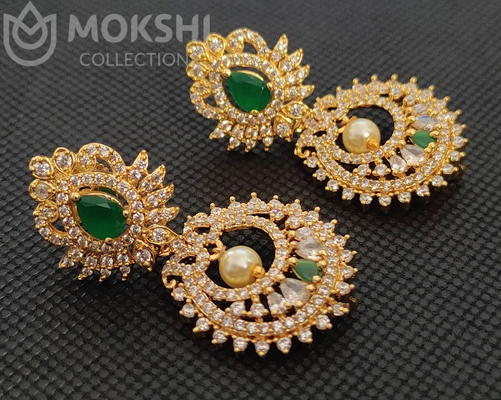 Women Love Jewelry as it not only enhances their beauty, but also gives them the social confidence. This Piece of Jewelry will enhance your beauty and compliment your dress. Package Details: 1 Pair of Earrings Base Material: Alloy Gem Stones: AD’s Emeralds Earrings Length: 6cms Earrings width: 3cms Earrings type: push back