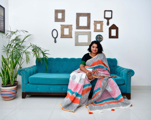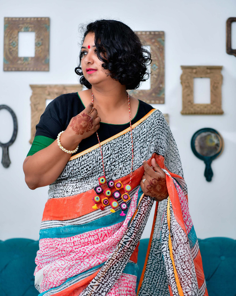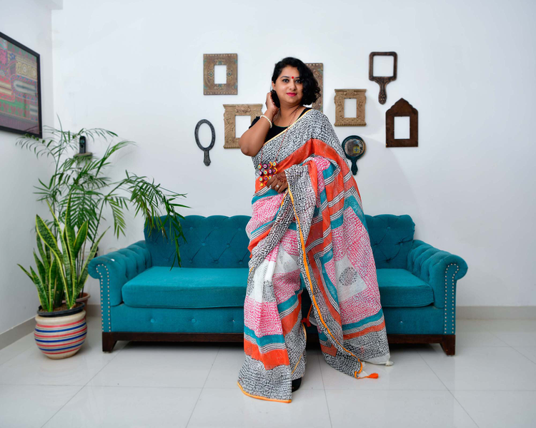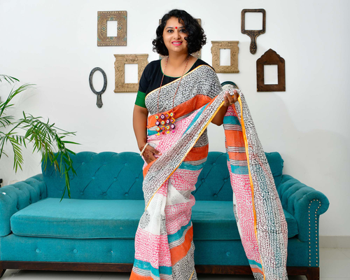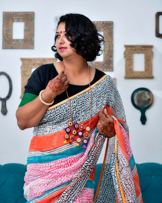Afsana - Hand Block Printed Linen Saree