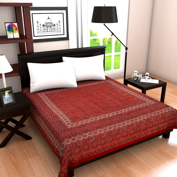 Ajrakh Printed 90*108 Cotton Rust Bed Sheet