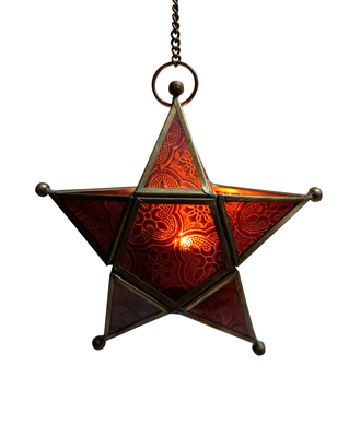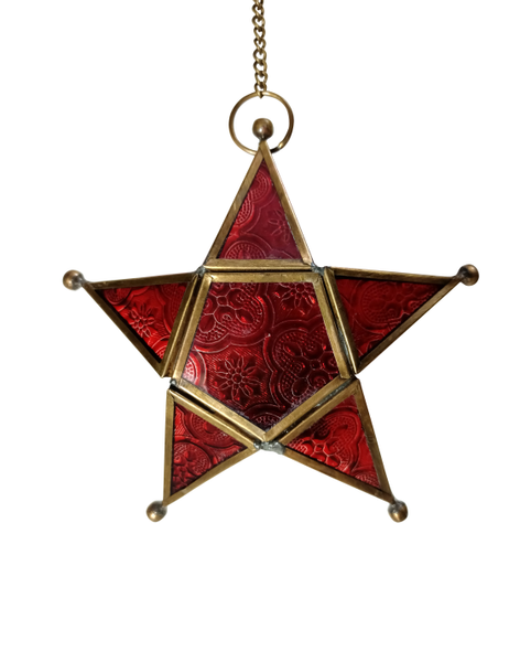 Alisha Exports Decoratibe Brass Red glass star Lantern