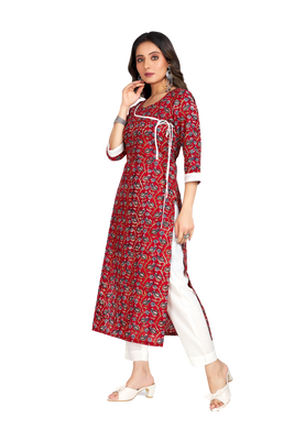 - Sizing/Fit - Neck -Round Shape ,Sleeves 3/4th ,Model Height is 5'3" & Wearing size Medium.