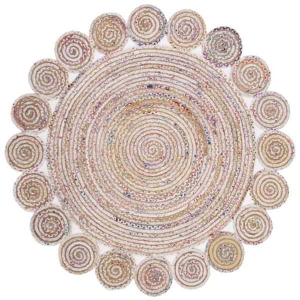 Material : This carpet is handmade from natural jute fibre. It has high insulation properties and high tenacity and is eco friendly. It is crafted with many colours that’ll enhance the beauty of your home. It is a braided jute rug.