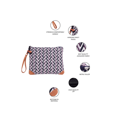 - Features - Occasion - Casual Primary Color - Purple Water Resistance - Not water resistant Handles - cotton Strap - no strap Number of External Pockets - 0 Number of Main Compartments - 1 Number of Zips - 1