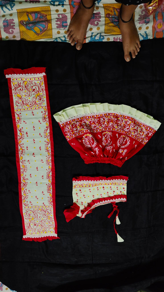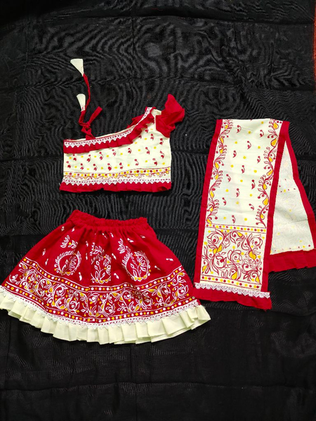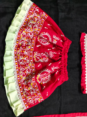 Baby Lahenga is made pure cotton clothes. It is hand painted by acrylic colour. This is very comfortable for kids and new born baby.