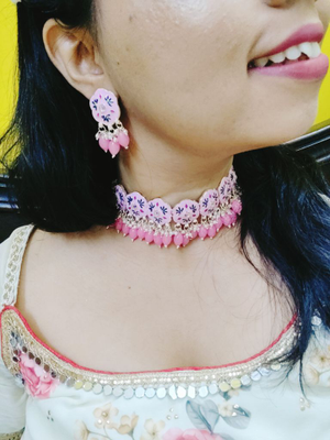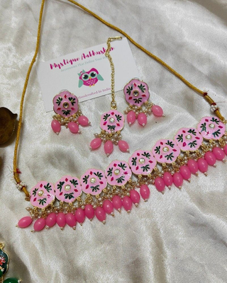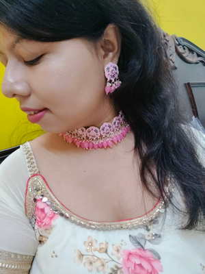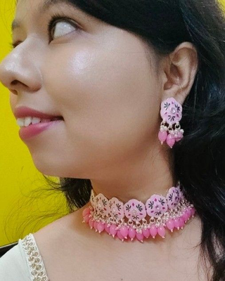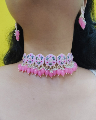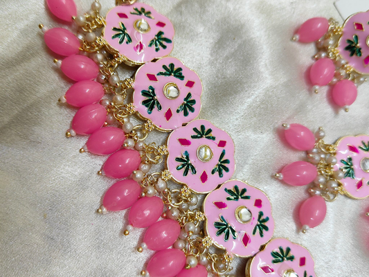 Baby Pink Meenakari Choker, Necklace Set
