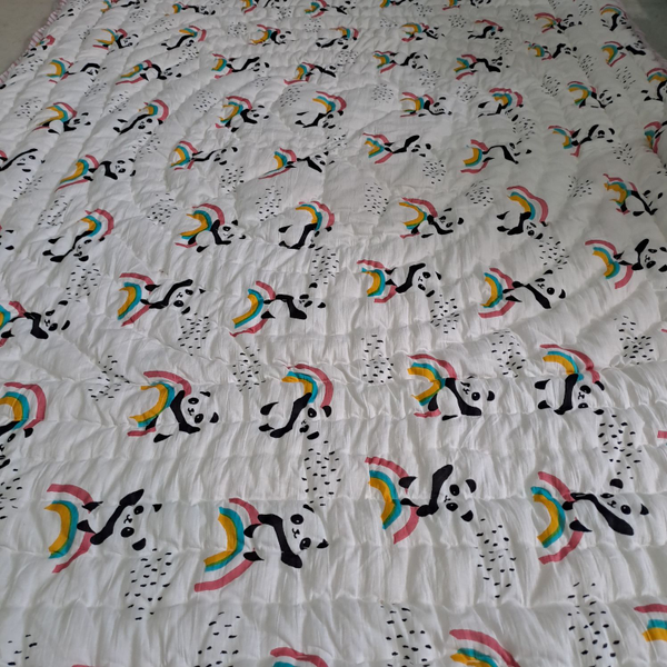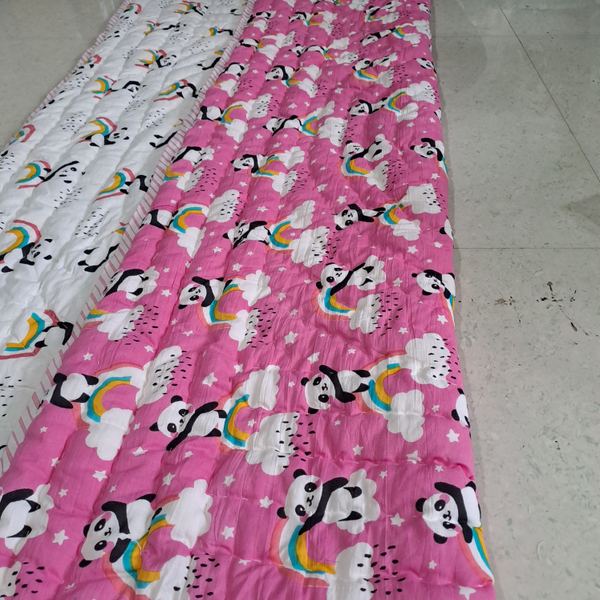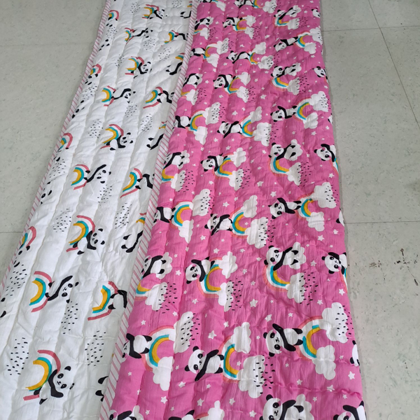 Baby quilt soft and warm beautiful color pink & white baby print export quality 100% cotton fabric & natural cotton fill & hand stitching not washable