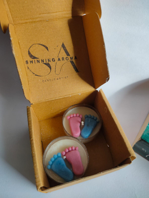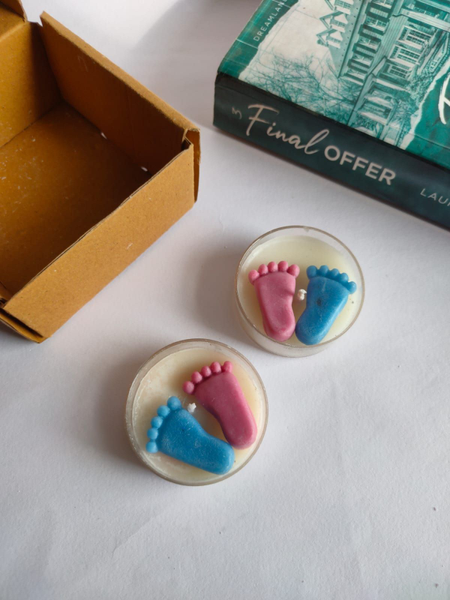 - Features - High-quality wax and a clean-burning wick for a safe and enjoyable burning experience - A warm, soft glow that adds a touch of warmth and coziness to any space Perfect for: - Baby shower decorations: Add a lovely and festive touch to the celebration - Gift giving: A thoughtful and practical present for the new mom and baby - Nursery decor: A sweet and calming addition to the baby's room Our Baby Shower Tealight Candles are a delightful way to welcome the new arrival and create a warm and cozy atmosphere for the special celebration Soy wax has been proven to burn slower and longer, it is natural and non toxic and has a much cleaner burn compared to other waxes out there - so you won't experience any black soot from our candles! *Please note due to the nature of the product being handmade to order the colours may vary slightly. Also due to the nature of soy wax and air bubbles there maybe the possibility of small imperfections and cracks/ slight jaggered edges.. These should not however affect the overall look or burning of the candle. Each candle is thoroughly checked before it leaves us to make sure it looks its best for you! ** We do create these candles to be home decor pieces, however If you choose to burn your candle then please follow all candle safety instructions and place them on a fire resistant surface (with sides) that you don't mind wax dripping on to as they will drip due to the structure and design of the candle and the nature of how soy wax melts. ** FOR CUSTOMIZATION OF SCENT AND COLOUR CONTACT US NUMBER : 9033026004 / 7984052384