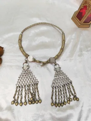 Traditional Hasli Necklace is statement symbol for the rabari tribes. This necklace is purely handcrafted by the tribes by mixing various metals n making this statement hasli out of it.
