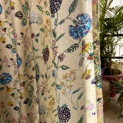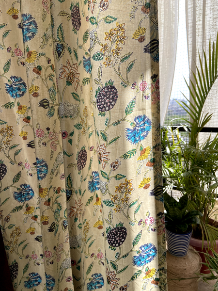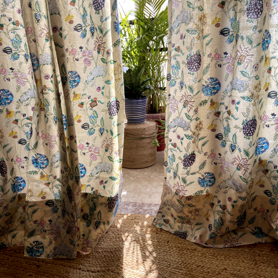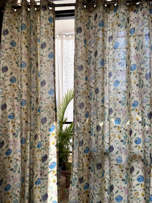 Beige Floral Floral Cotton Curtain