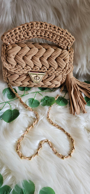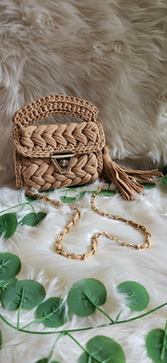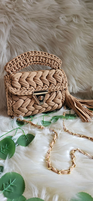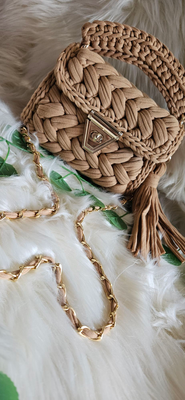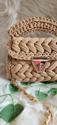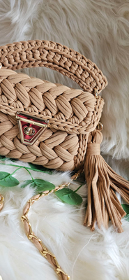 Our beige marshmallow crochet handmade bag.