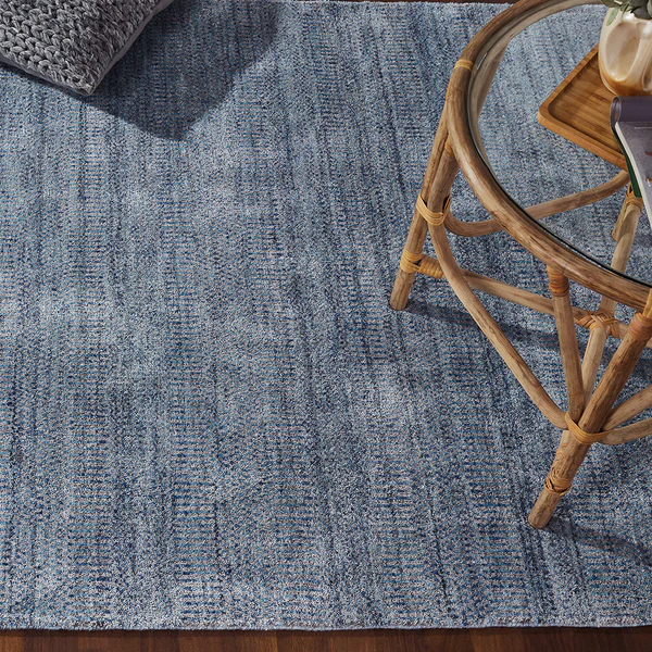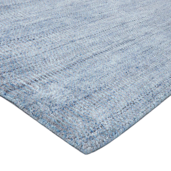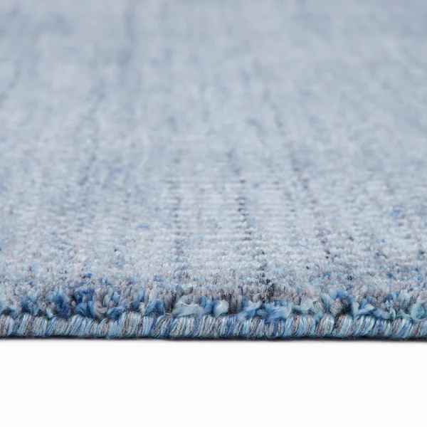 Feel the light blue sky under your toes with our handwoven wool & cotton stitched rug.