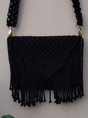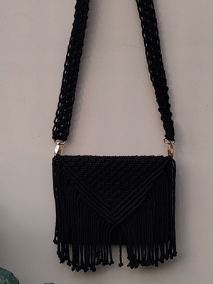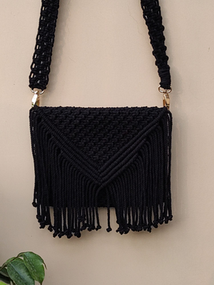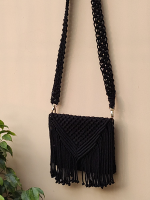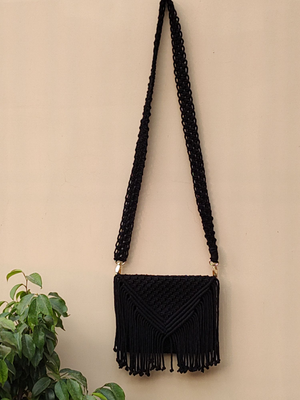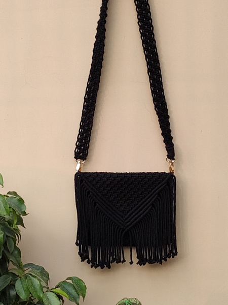 Handwoven sling bag reflects elegance through each knot. The black colour makes you stand out in the crowd, while the intricate design attracts all the attention. Hold it like a clutch, or sling it around!