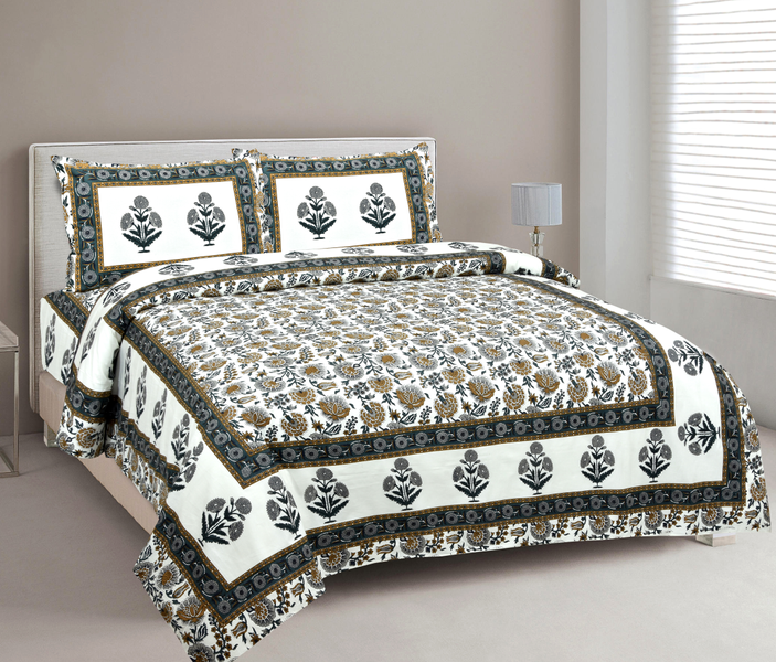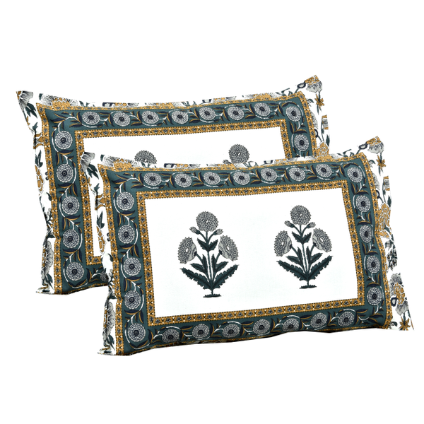 - Features - 200 TC, Flat Sheet, Pillow Covers: 18 x 28 inch (46 x 72 cms), Block Print