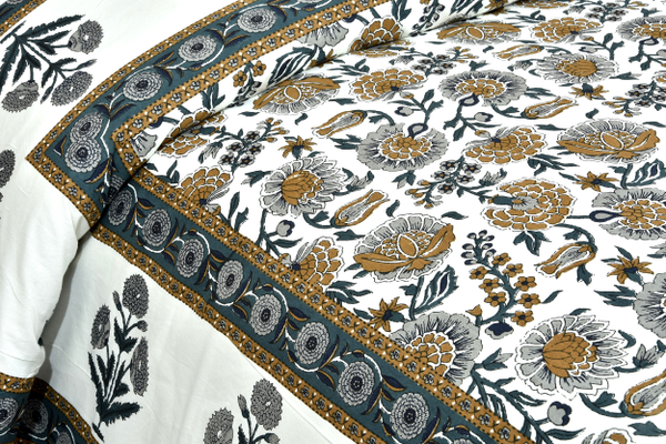 Blossom- Jaipuri Print Green Floral King Size Cotton Double Bedsheet