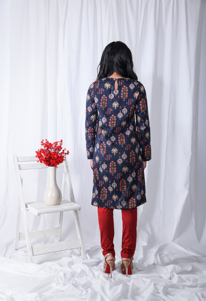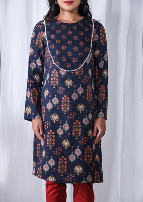 Blue Printed Floral Yoke Kurta