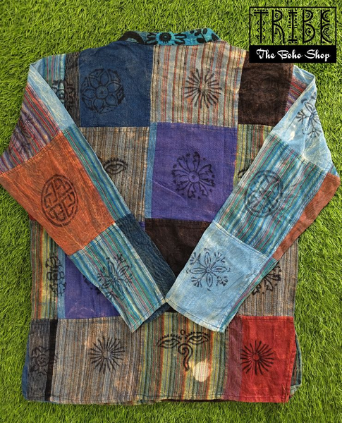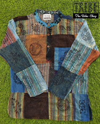 Kurtas made up of 30-40 pcs of multicolored cloth patches stitched together with unique Mudhras hand block printed on them.