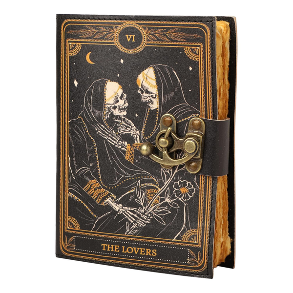 Book of Spells Leather Journal Deckle Edge Paper Grimoire Printed Journal The Lovers