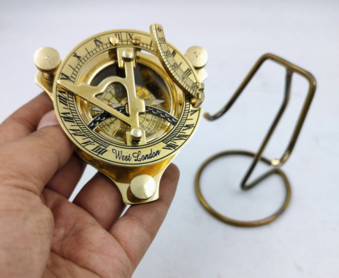 Brass made sundial compass with stand