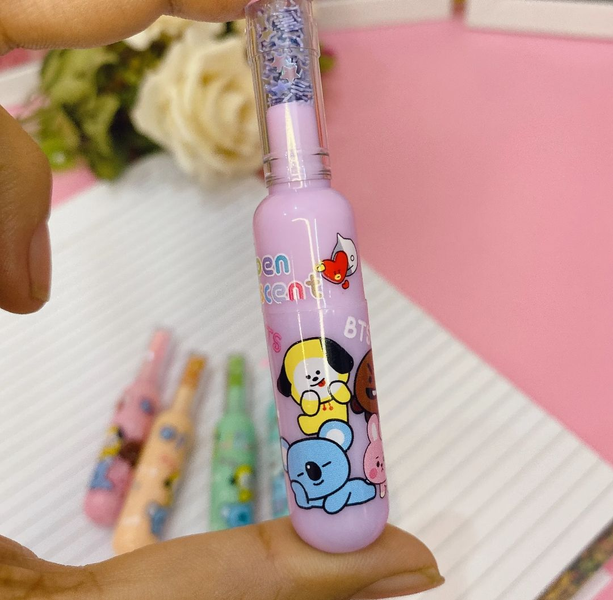 - Unique Bottle Shaped BTS Cartoon Theme & Unicorn Design With Narrow Barrel Offers A Comfortable Grip For Reduced Hand Fatigue,Removable Glitter Cap Stores On The End.