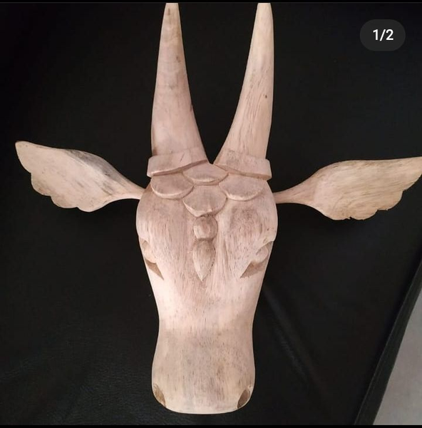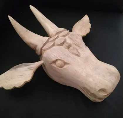 UNPAINTED wooden Cow / Bull heads carved by Indian rural artisans.