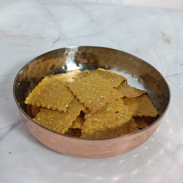 - Ingredients - wholewheat , Carrots, White sesame , Red chilli powder , unsalted butter, Garam Masala, Himalayan pink salt