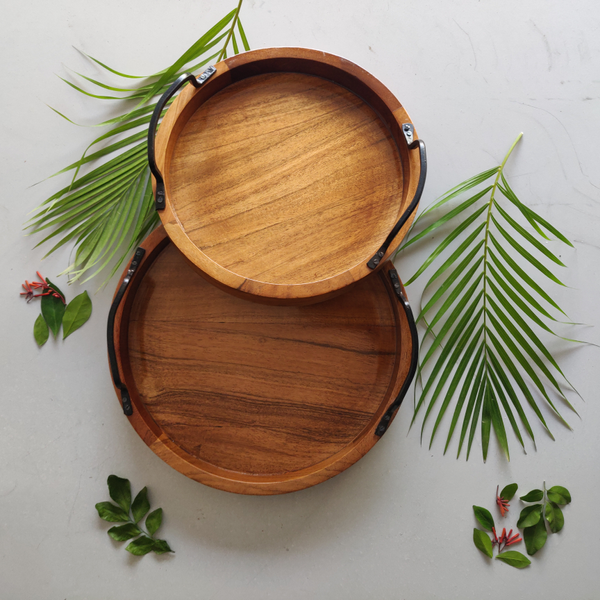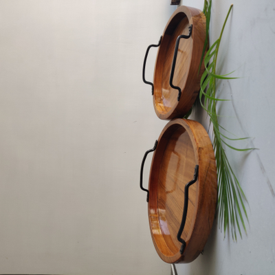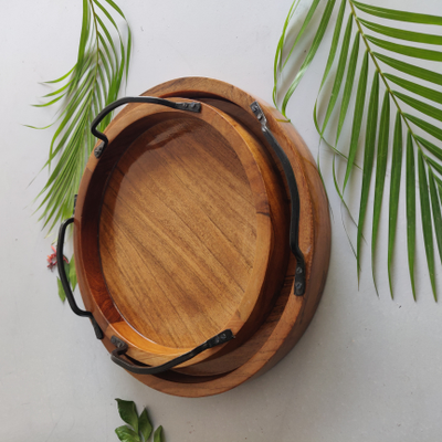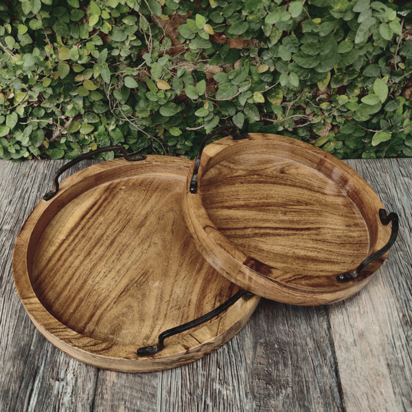Circular Tray Set of 2 with Iron Handle