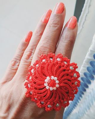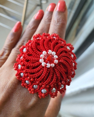 Ring TOP made out of Finest Cotton Fast Color Thread using Tatting method. Centre of Ring is decorated with contrasting color beads. Ring base is Golden Metal (adjustable) free size. Ideal Gift for loved one. Actual Packing material & Colors may differ from Picture due to Photography. This is a made to order product and same is customisable as per user demand. Contact Whats App 9891977022 for Bulk Order offers and customisation. Shipment through India Post all over India with tracking details.