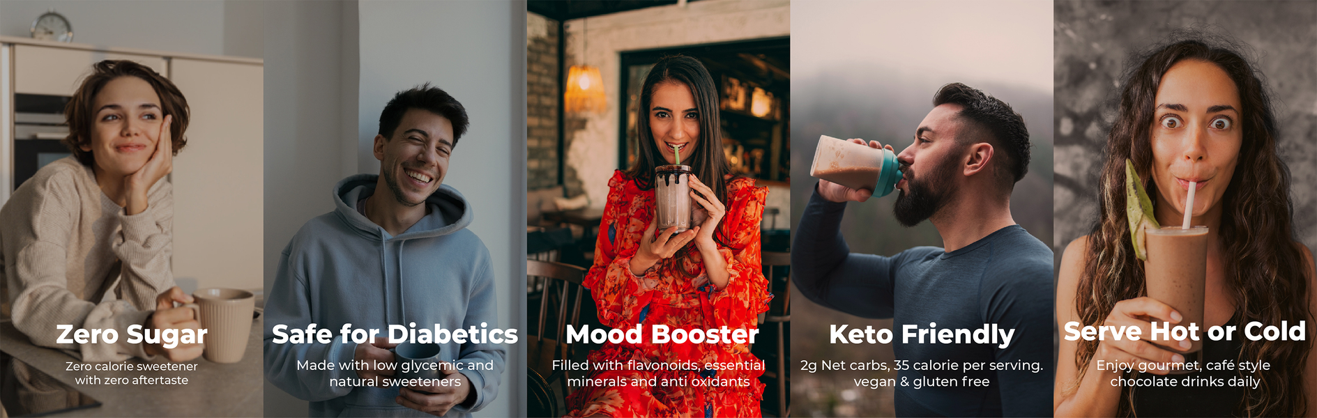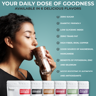Let Cocosutra SLIM Drinking Chocolate fill you with JOY while keeping all your health goals intact. Relish our innovation of ZERO SUGAR Drinking Chocolate - Made with premium cocoa beans and perfectly sweetened with natural, zero calorie sugars that are expertly blended to satisfy all your cravings.