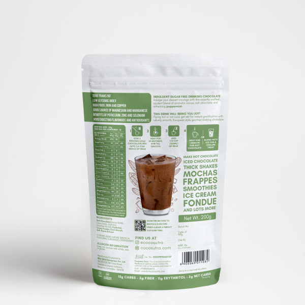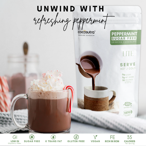 Cocosutra LITE - Sugar Free Drinking Chocolate Mix - Peppermint, 200 g