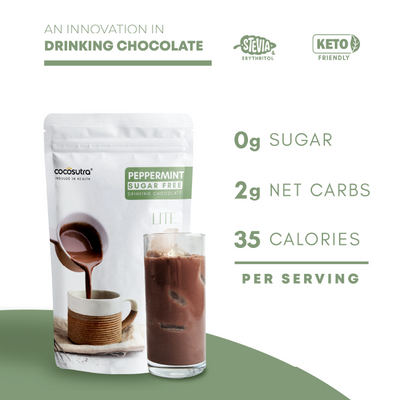 Refreshing Peppermint: Cocosutra Peppermint Drinking Chocolate - Indulge your dessert cravings with this expertly crafted, opulent blend of aromatic cocoa, rich chocolate and refreshing peppermint.