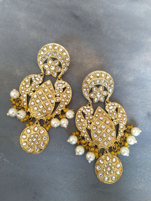 Polki Designer Earrings Yellow Crystals