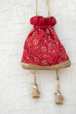 Golden Cutdana Embroidery luxury Party Wedding Potli Bag