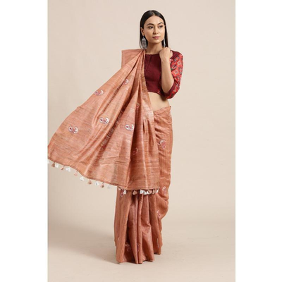 Kalamkari Hand-painted Color Block Tussar Silk Saree