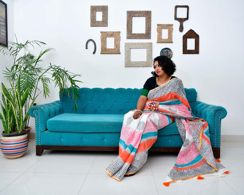 Afsana - Hand Block Printed Linen Saree