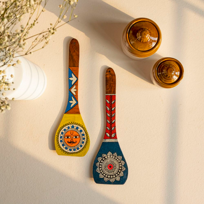 Mirai Woods Pragya Wall Hanging Decoration For Home | Living Room | Dining | Staircase Wall | Wall Hanging Spatula | Hand Painted Solid Wood Spatula | Set Of 2 | Height 12"