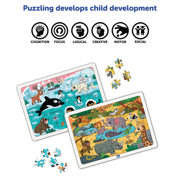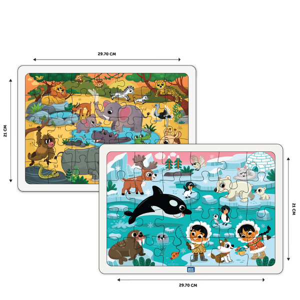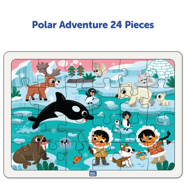 Package Content: 24 Pieces of Polar Adventure Wooden Jigsaw Puzzle and 35 pieces of Wild Safari