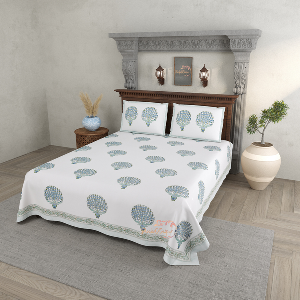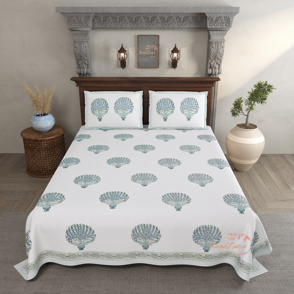 Jaipuri Block printed bed sheets is the most popular form in India of Flatbed sheet or sofa cover table cover make a light blanket, throw or bedspread.