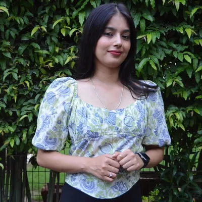 Trendy breathable Cotton corset top with plain weave and smocking effect on the back . Best fabric for summers.