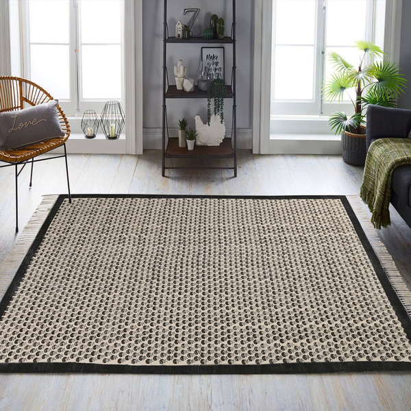 This hand loomed rug is an amalgamation of simple yet effective hand blocks designs.