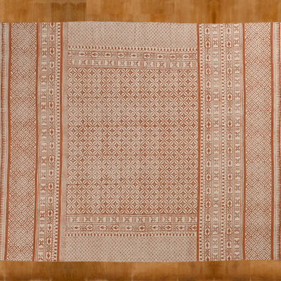 The traditional Indian practice of “CHAPAI” on rugs uses carved wooden blocks to create a sequence of floral or geometric designs.